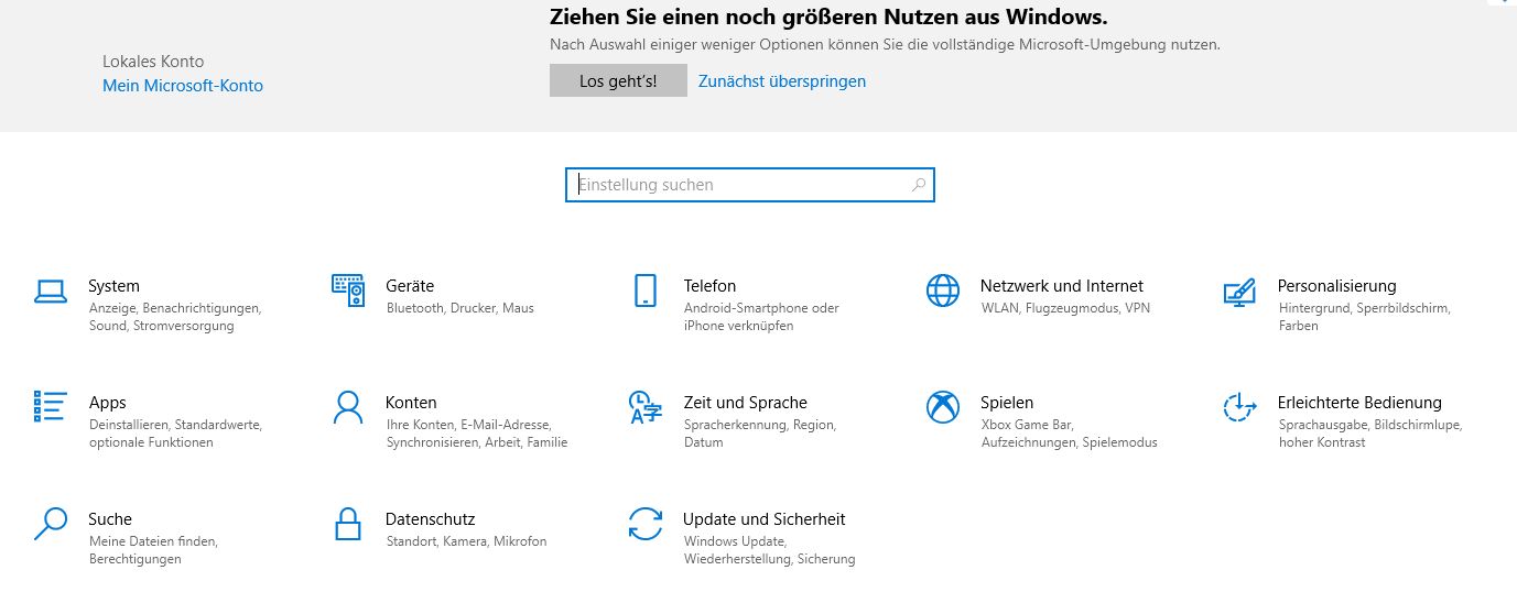 Zentrale Stelle für Benutzereinstellungen | Die Einstellmöglichkeiten wurden gegenüber Win7 wenig verändert. | ||