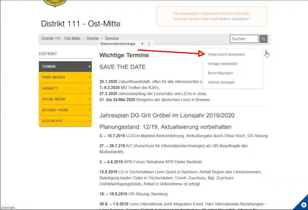 | Allgemeines | Alle Seiten deutscher Distrikte und Clubs werden über die Homepage der deutschen Lions (www.lion.de) verwaltet. | Es kommt ein sogenanntes Content Management System zur Anwendung. | ||