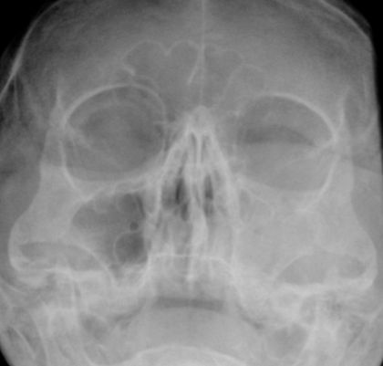 Verschattung der linken Kiefernhöhle nach Gesichtsprellung![]() | |||||||||