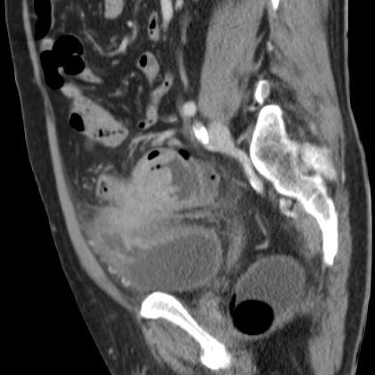 | Ileus | Das CT zeigt einen stenosierenden Sigmatumor mit ausgeprägtem Ileus. |