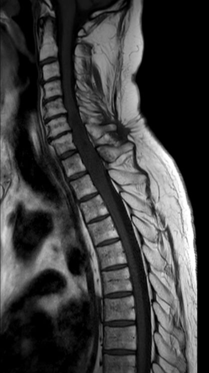 | Myelon | 63-jähriger Mann mit Querschnittssymptomatik. Auch nach Dekompression keine Motorik oder Sensorik der unteren Körperhälfte. | ||